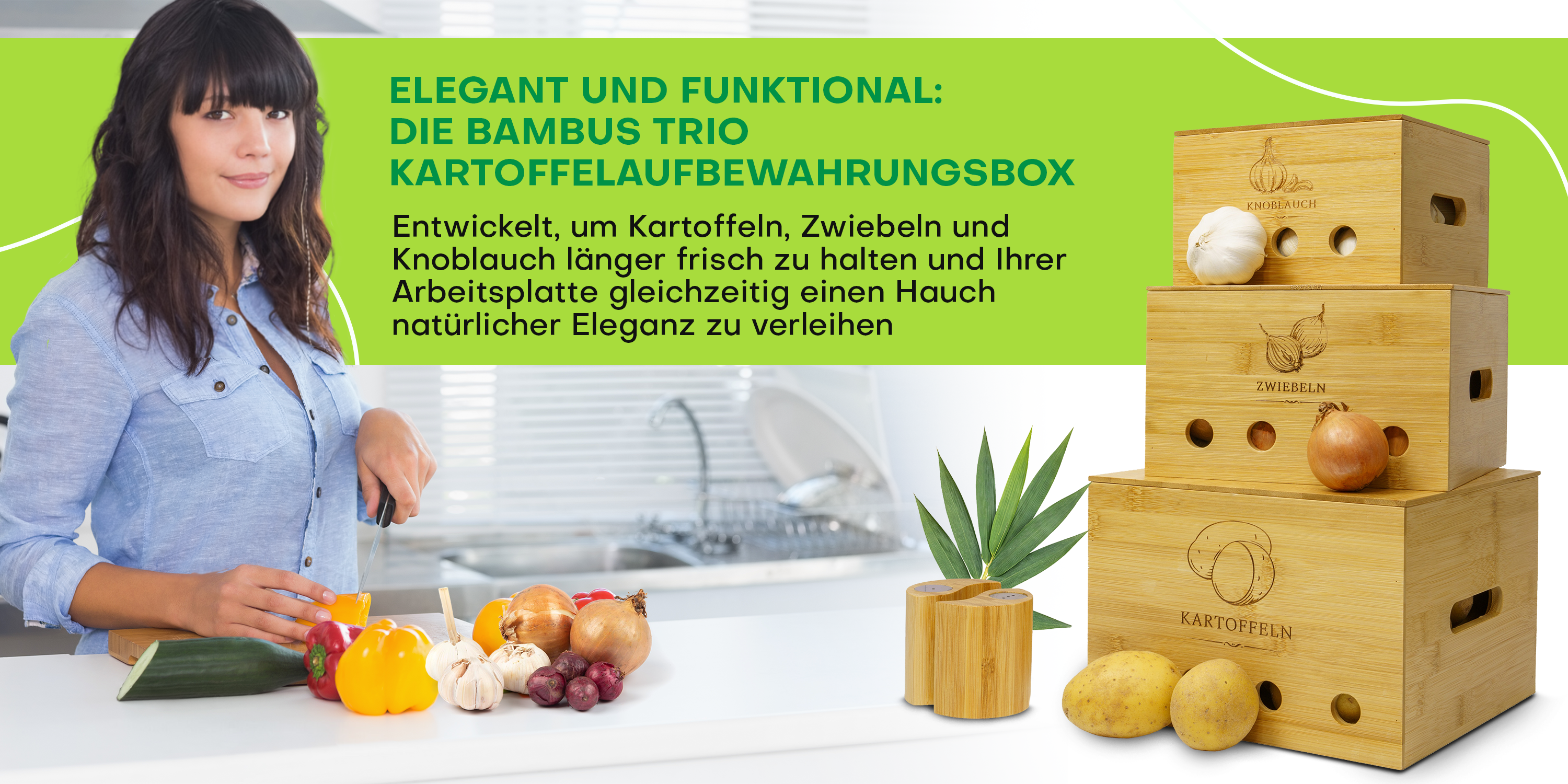 BAZELINE CREATIONS® Bambus Vorratsdosen Set [3-teilig] | Nachhaltige Küchen Organisationslösung | Perfekt für Kartoffel Lagerung, Zwiebel Lagerung und Knoblauch Lagerung